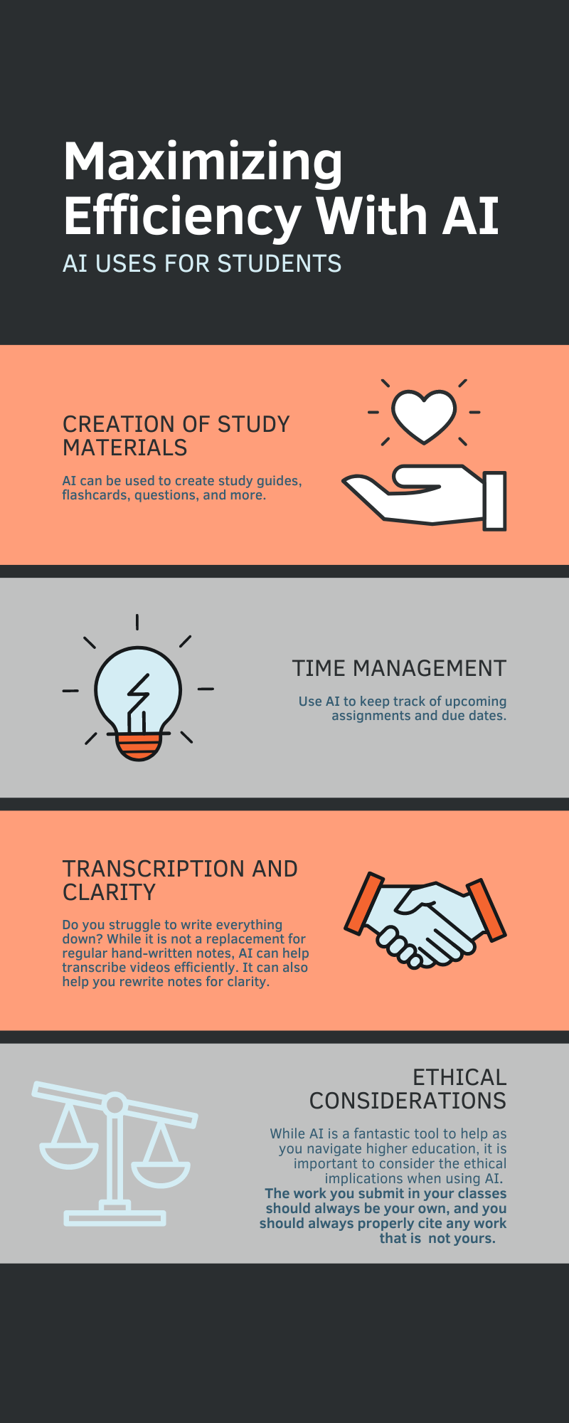 This infographic is a visual aid highlighting some ways AI can increase student efficiency.